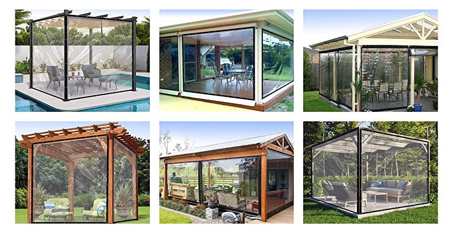 Our Tarps will easily block out snow, rain, wind, pollen, and dust. Commonly used for climate control on outdoor structures like patios, bars, and gazebos.